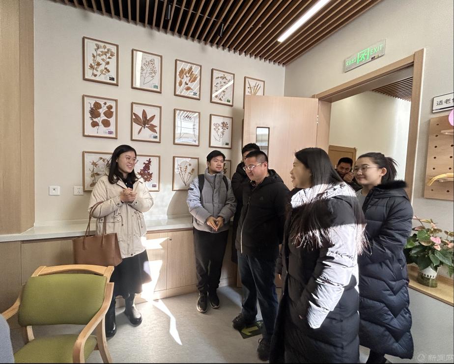 在养老服务中心工作人员的引导下,师生们先后参观了智慧健康监测区、适老化生活体验区、康养居住区及多功能公共服务区。同学们现场体验智能健康一体机及眼部监测设备,并借助远程诊疗系统实时对接三甲医院医生,深入感受智慧医疗在养老照护中的实际应用。在适老化模拟体验环节,大家佩戴专项装备,亲身感受老年人身体机能变化带来的日常生活挑战,增强对老年人的躬亲与理解。走进康养居住区,师生细致观摩了配备适老化家具、智能床垫与紧急呼叫系统的居住环境,切实体会科技如何为老年人构筑安全、便捷、温馨的生活空间。此外,师生还走访了社区食堂、老年学堂、文娱活动区等功能区域,系统了解了中心在“医、食、住、行、乐”等方面构建的全方位、人性化养老服务体系。座谈交流中,支部与养老服务中心就建立常态化志愿服务机制达成共识,未来将持续开展志愿活动,引导青年在服务奉献中践行使命、挺膺担当。
