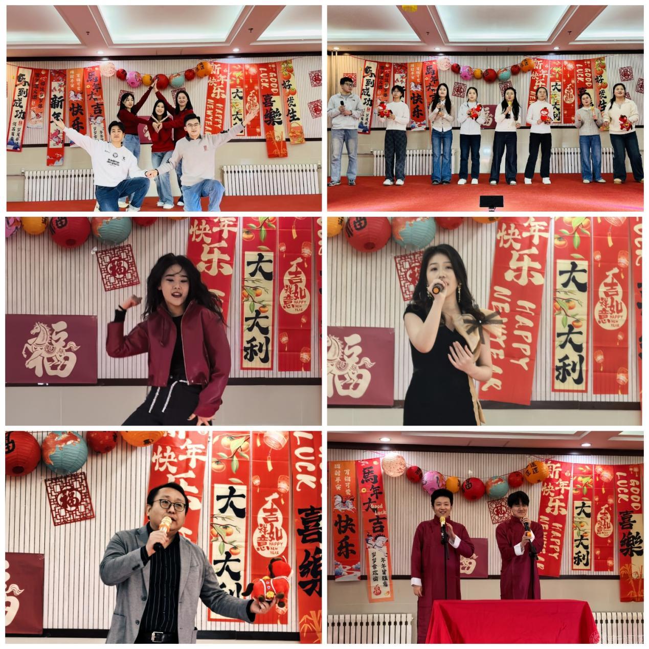 活力四射的开场舞《新年大吉》拉开了联欢活动的帷幕,瞬间点燃全场节日气氛,小合唱《明天会更好》传递对未来的美好憧憬,街舞《Like Jennie》青春舞姿尽显蓬勃朝气;歌曲《如愿》深情表达对岁月沉淀的守护与奋斗;《精忠报国》的铿锵歌声饱含家国情怀;相声《我是哲学家》妙语连珠,幽默诙谐中碰撞思想火花。